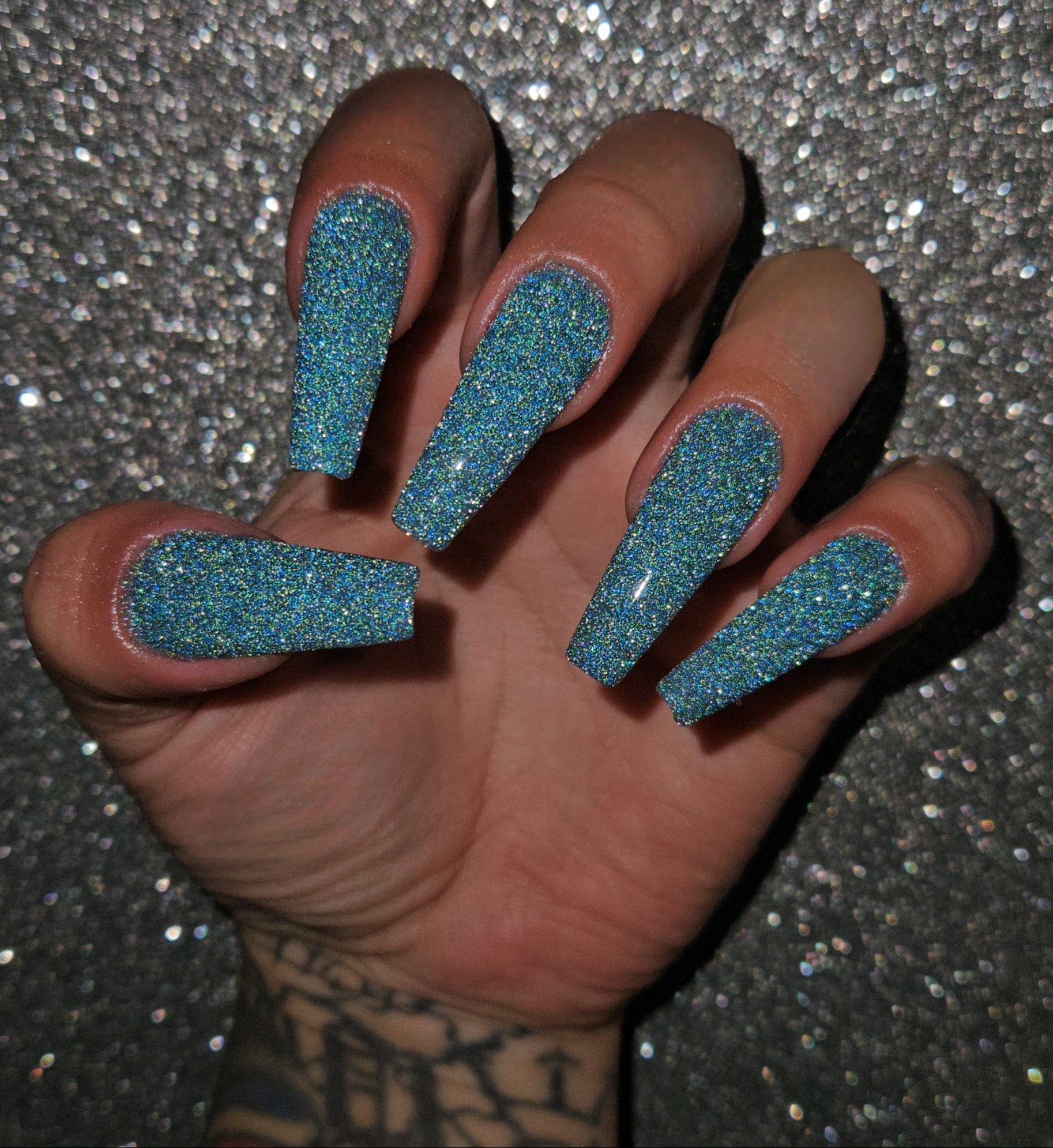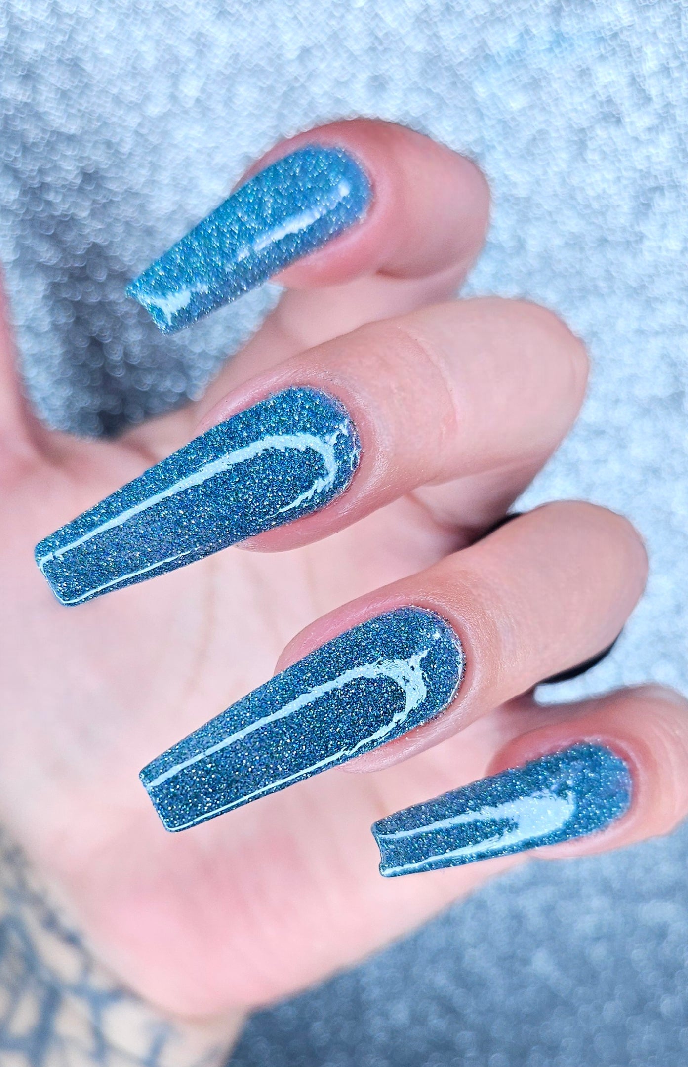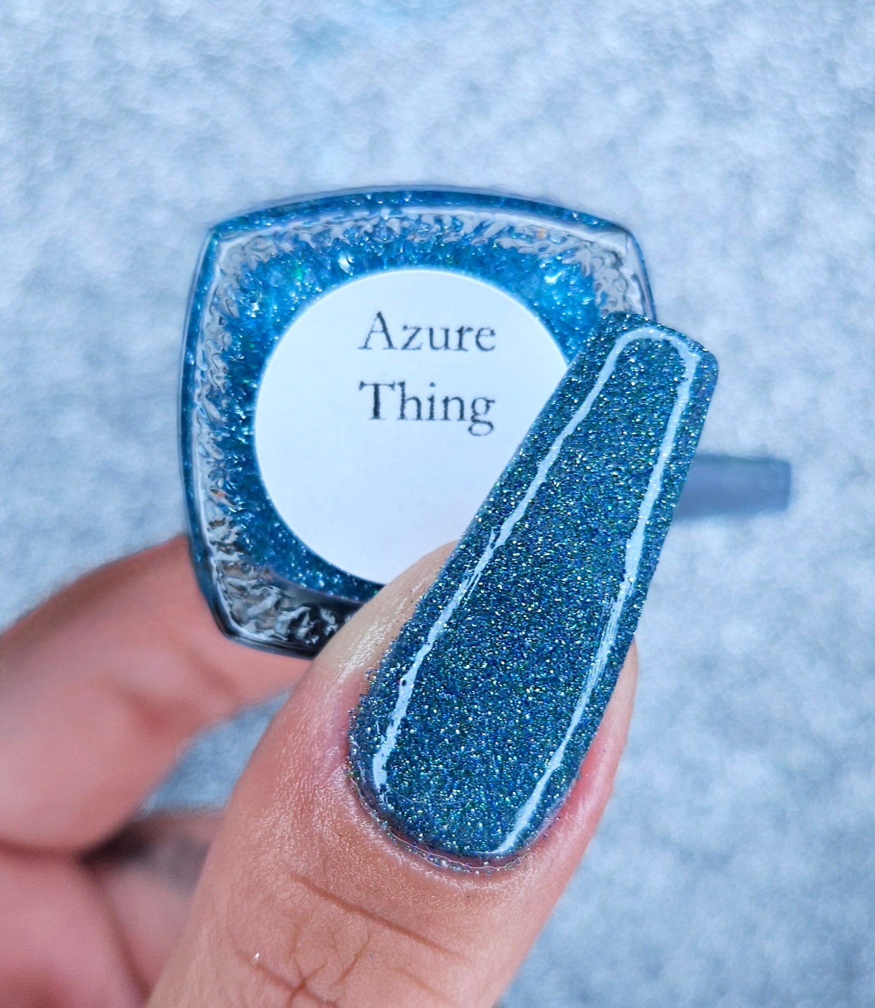 Azure Thing is a medium blue reflective glitter topper. Named by @mary.sandberg