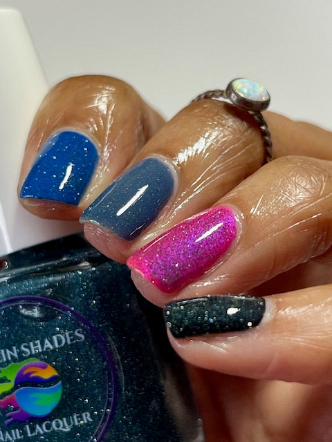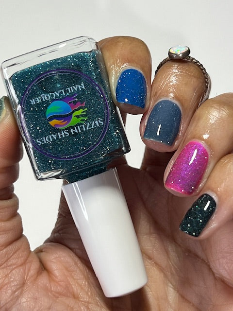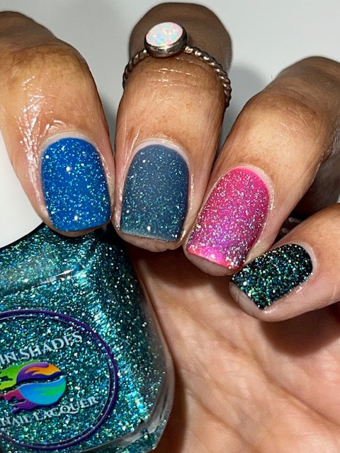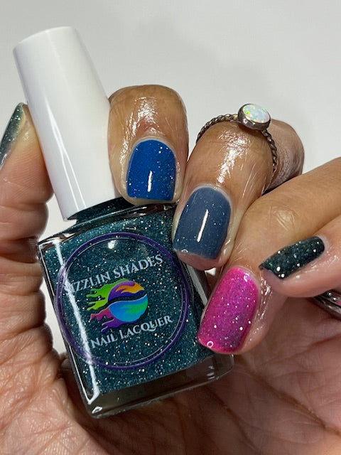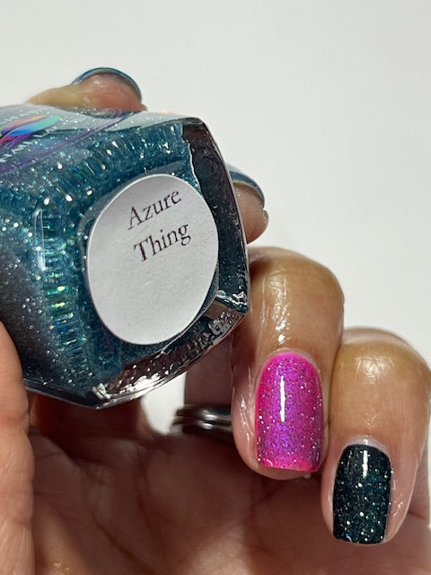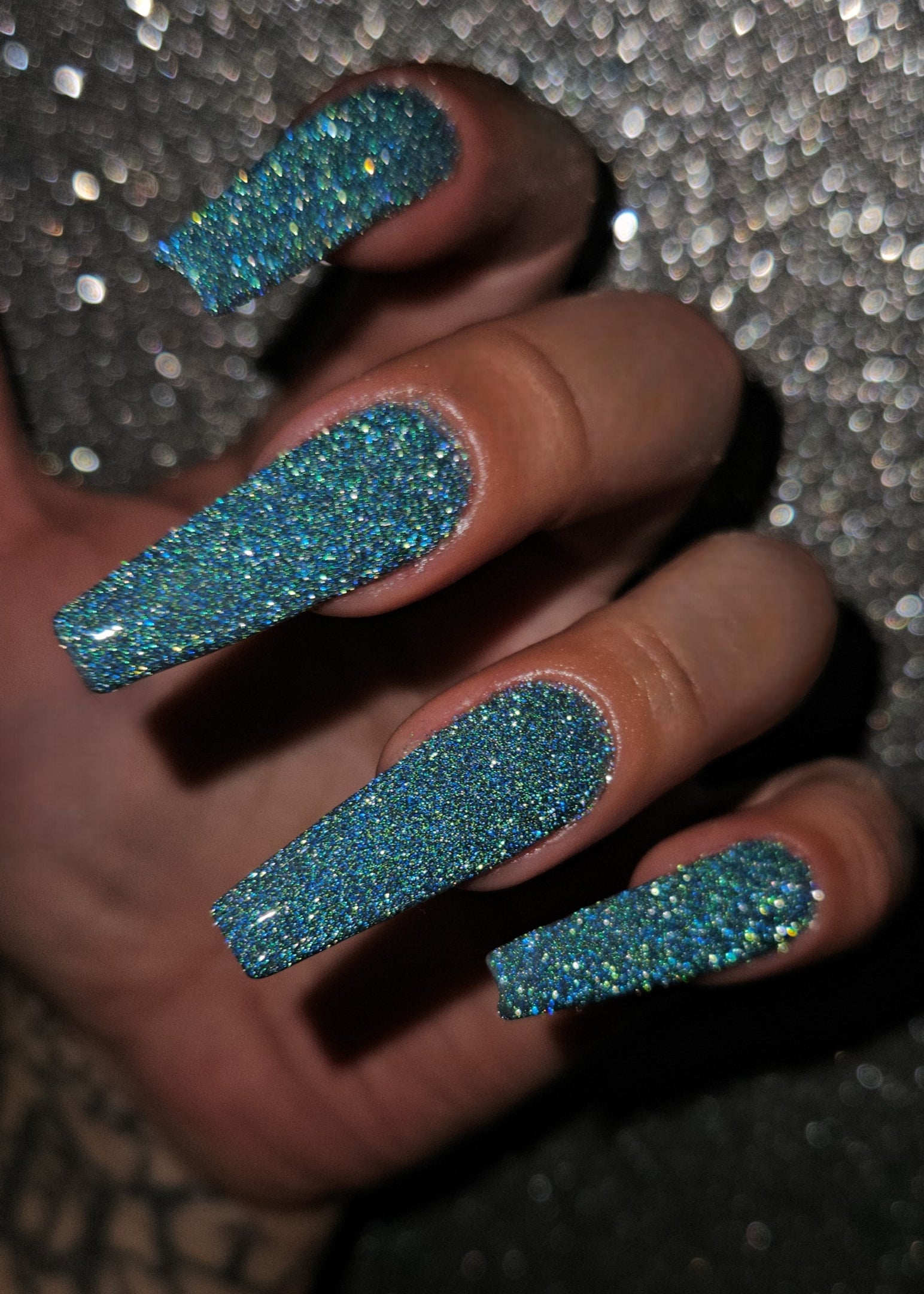 Azure Thing is a medium blue reflective glitter topper. Named by @mary.sandberg