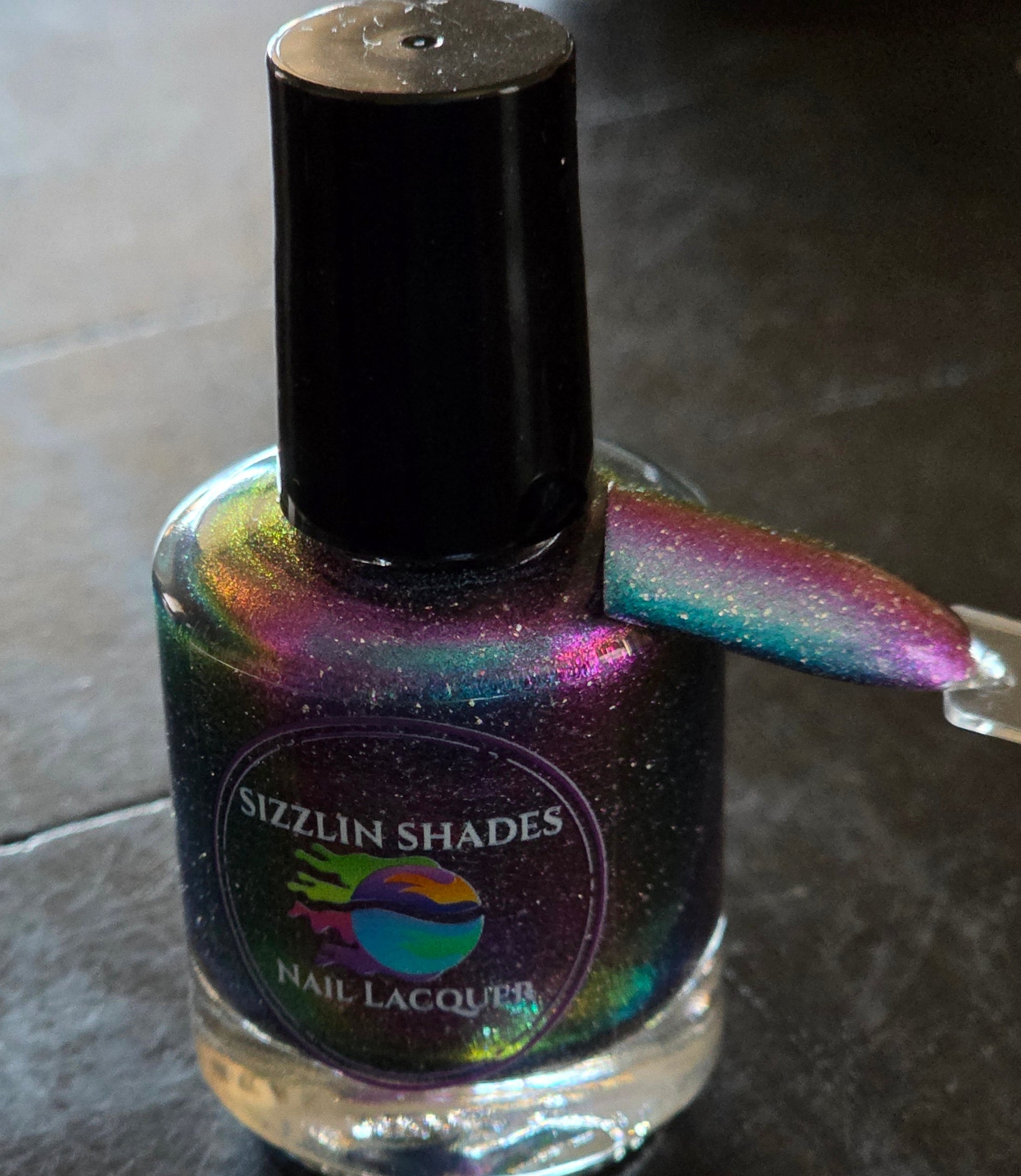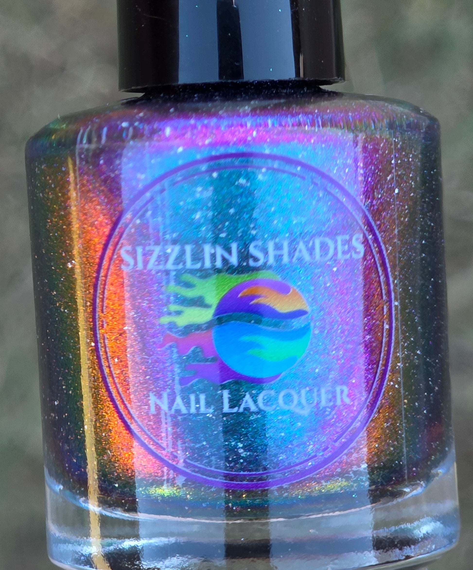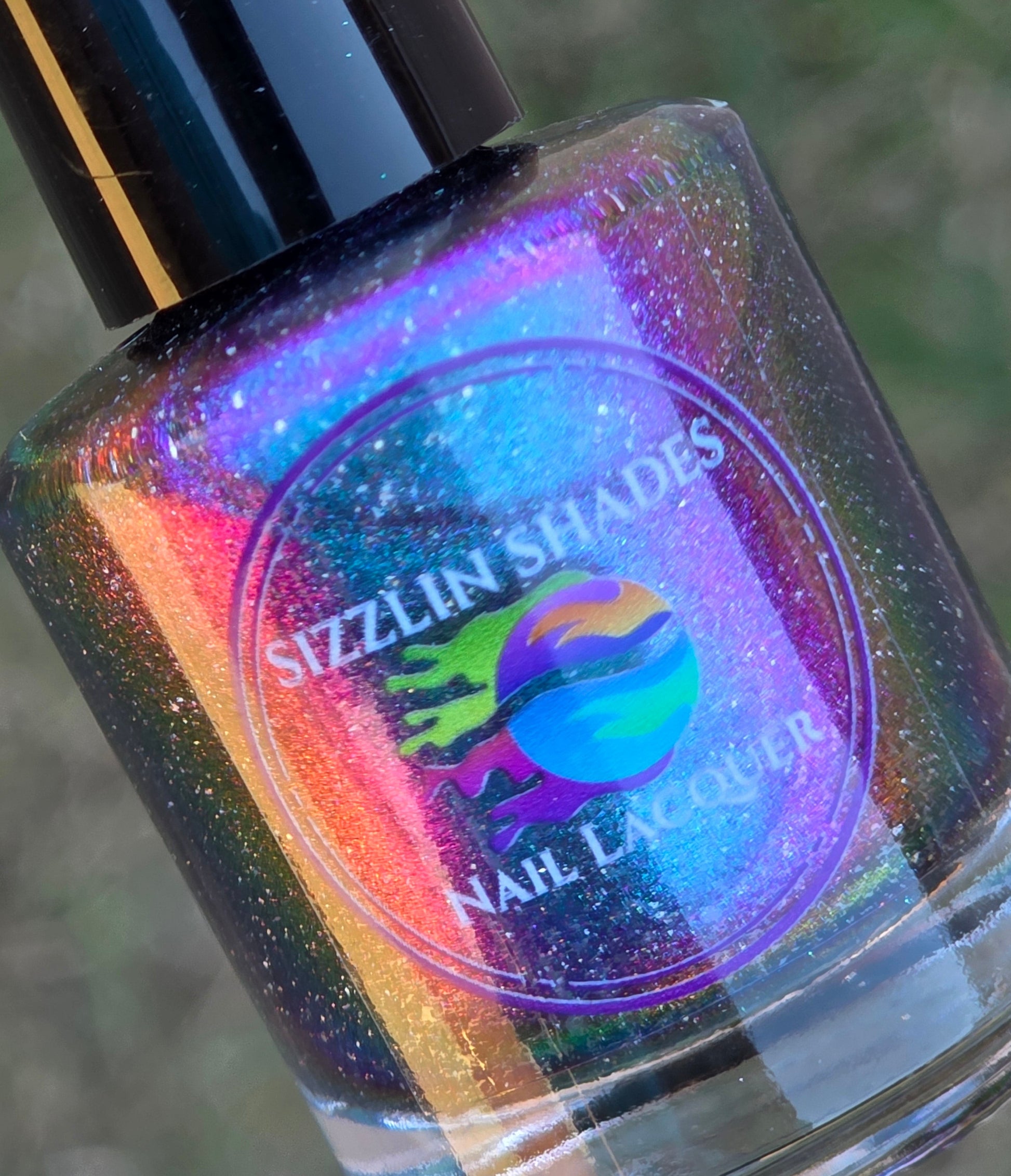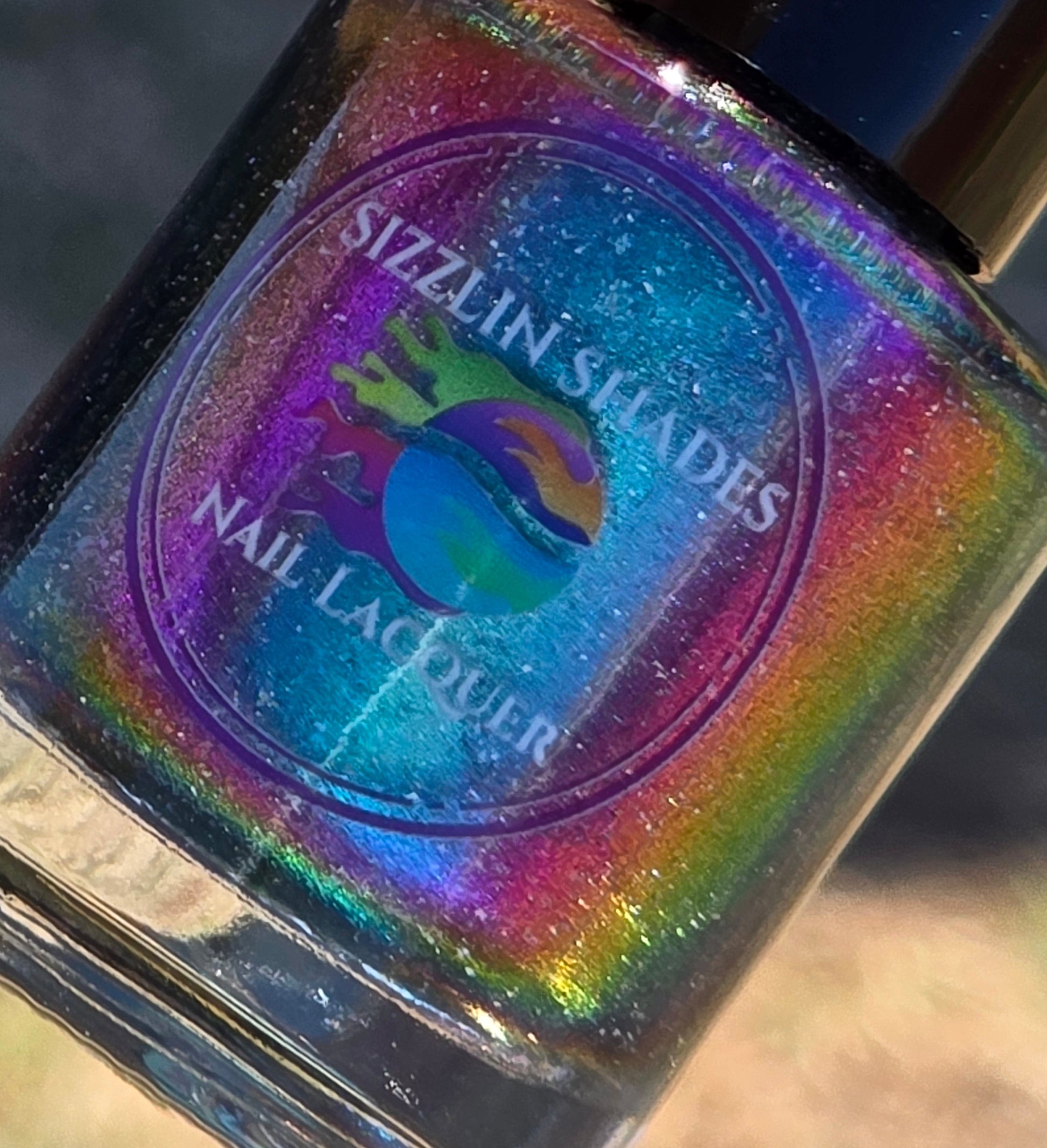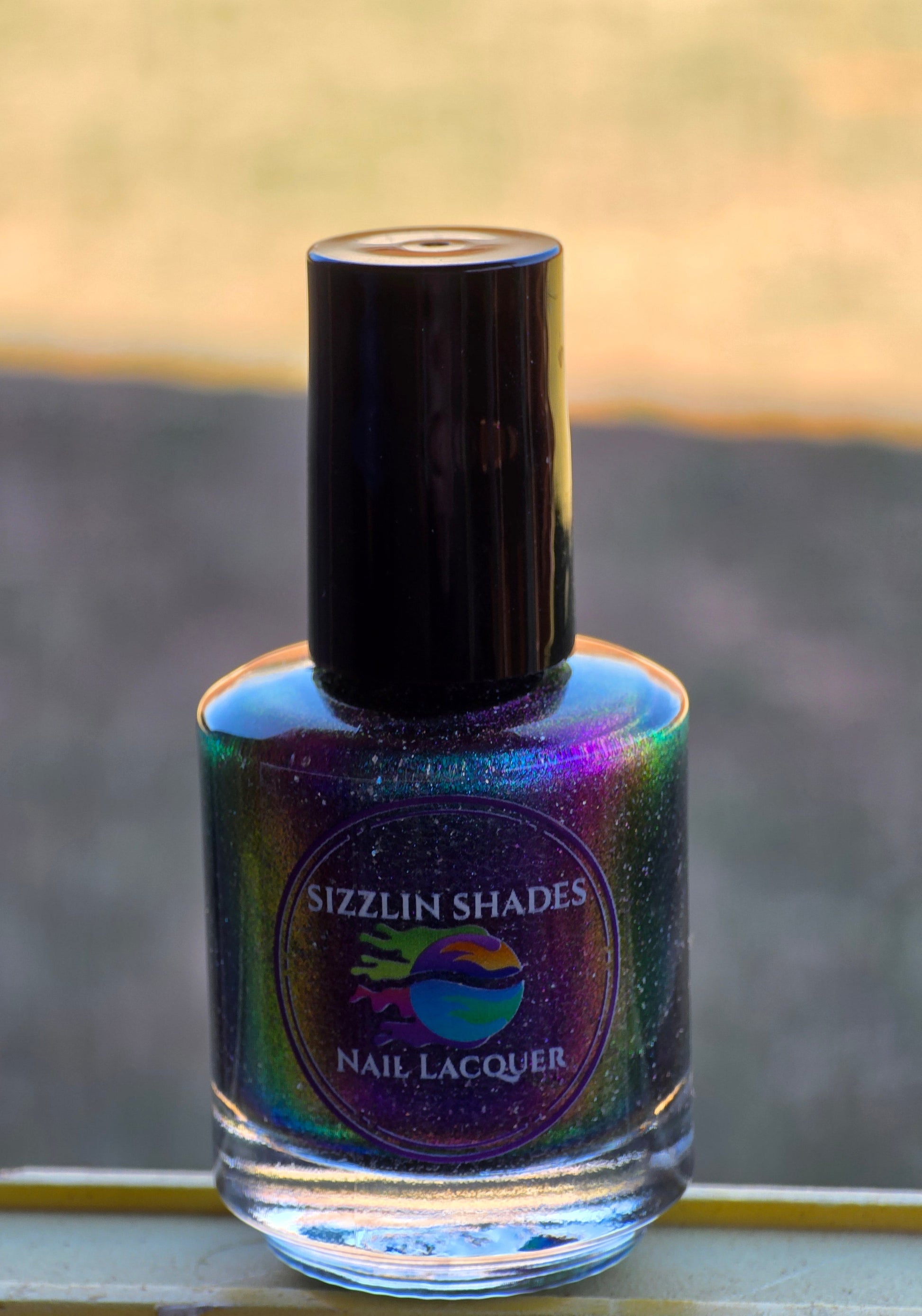 Beyond the Realm is a dark blue multichrome that shifts purple/pink/orange/green/teal, and has holo flakes throughout. The color shifts in this polish is amazing.