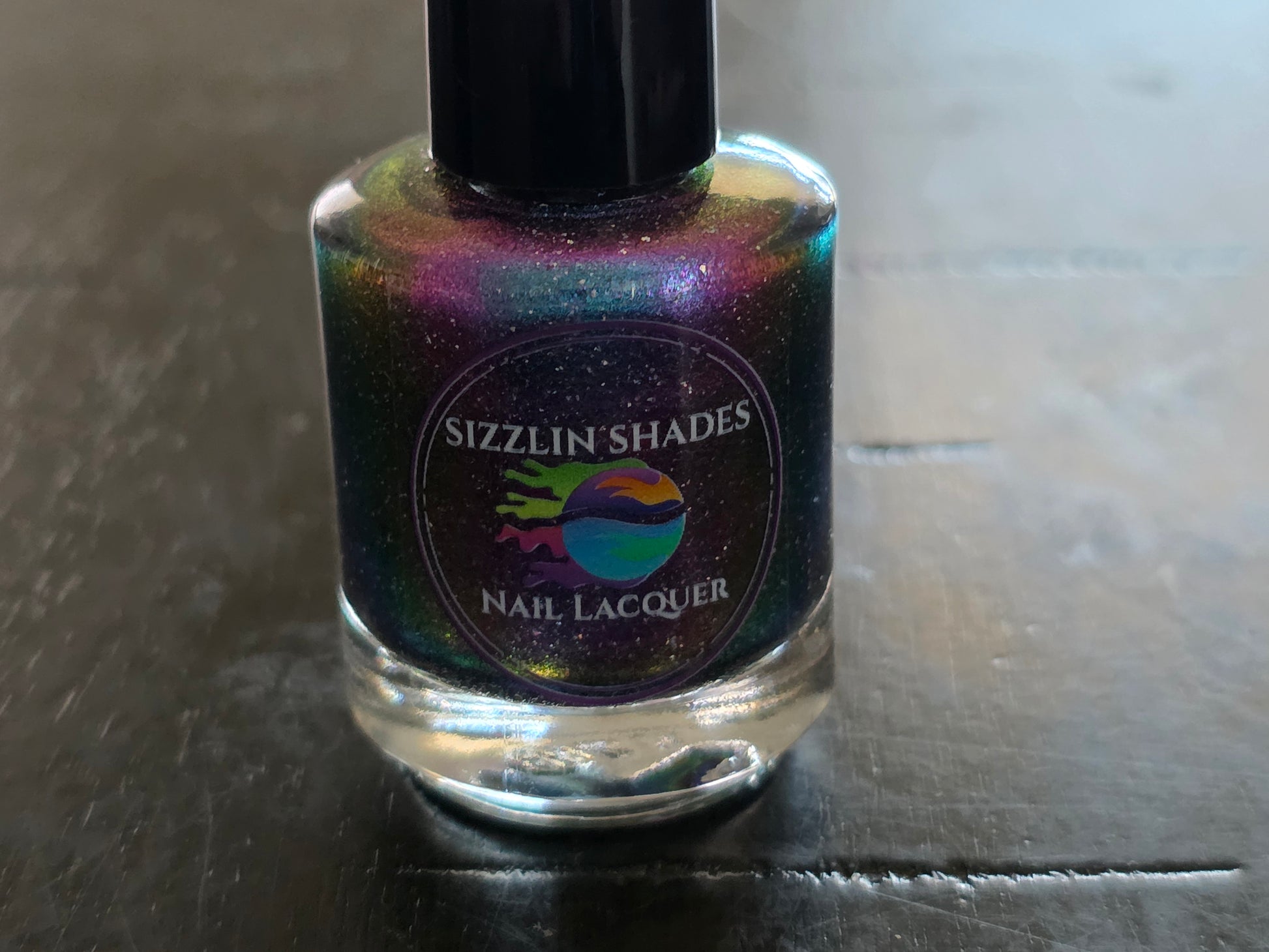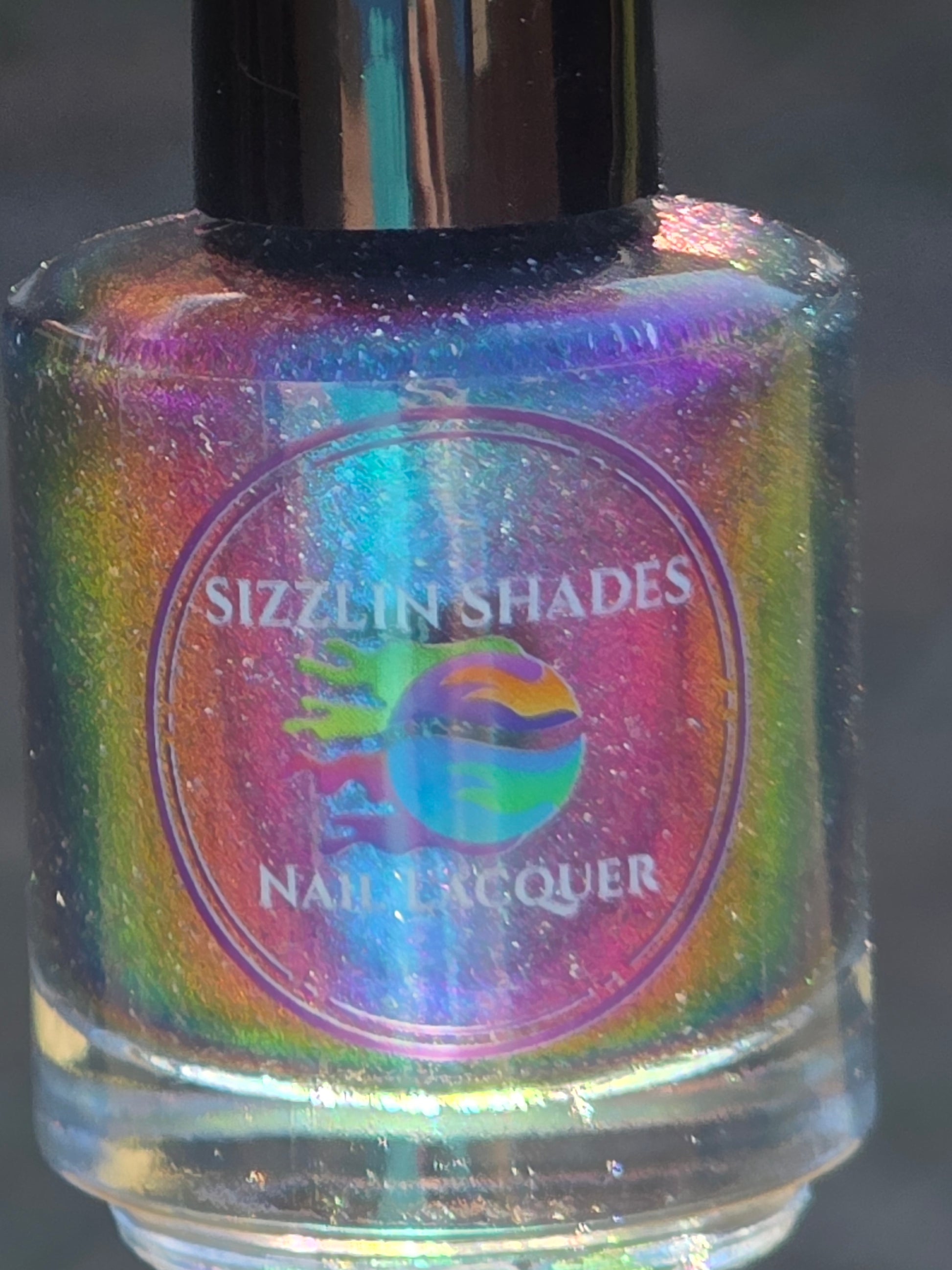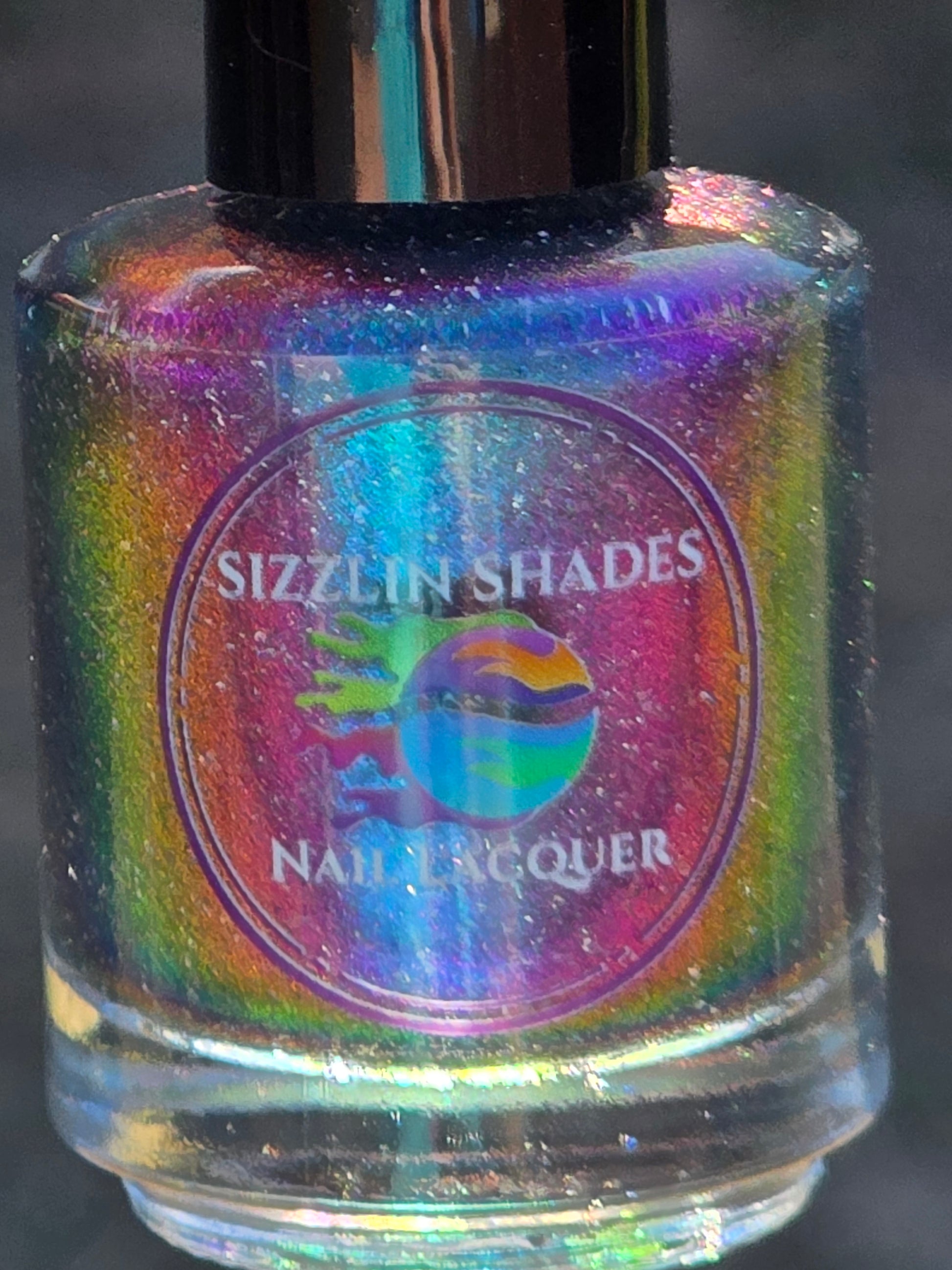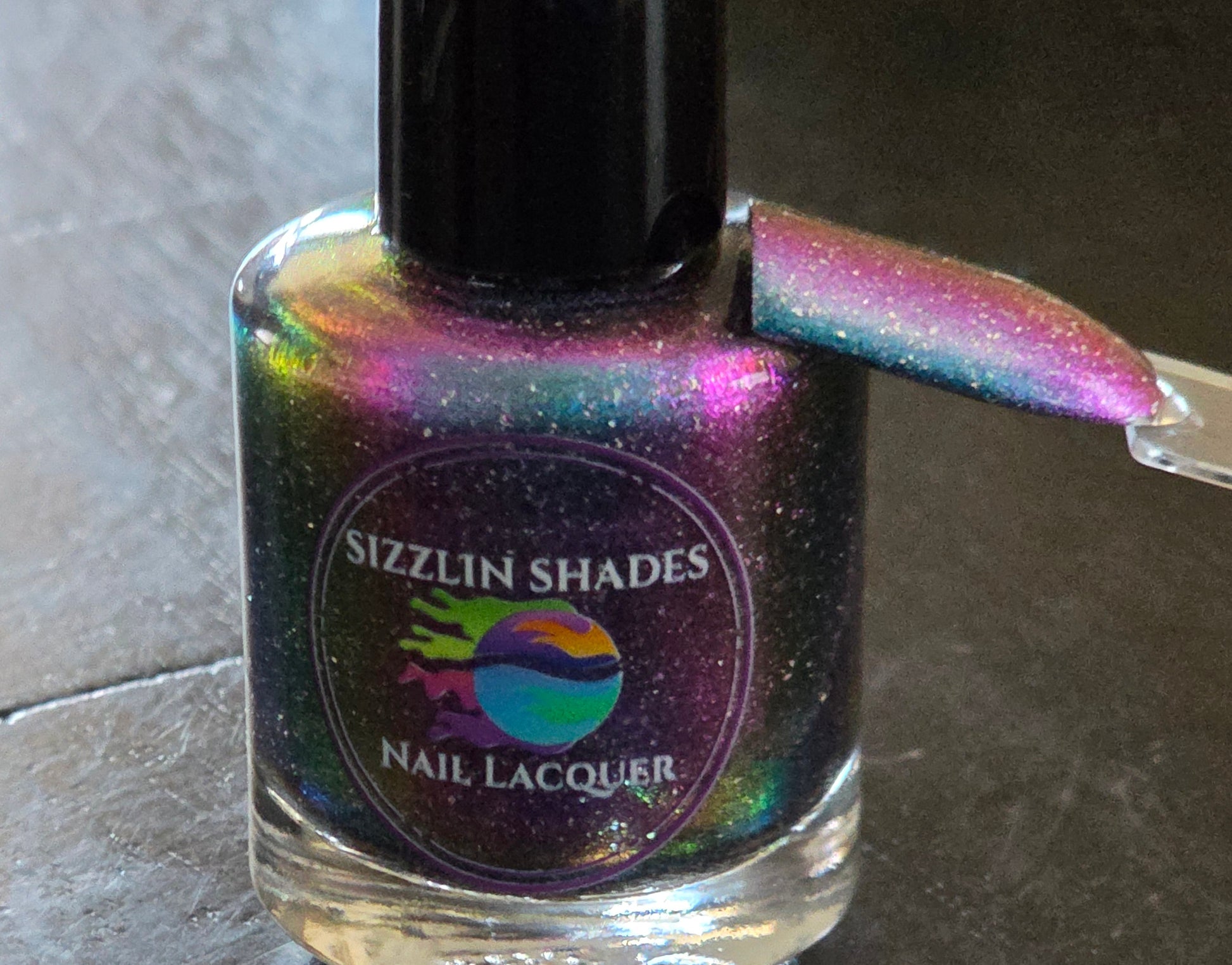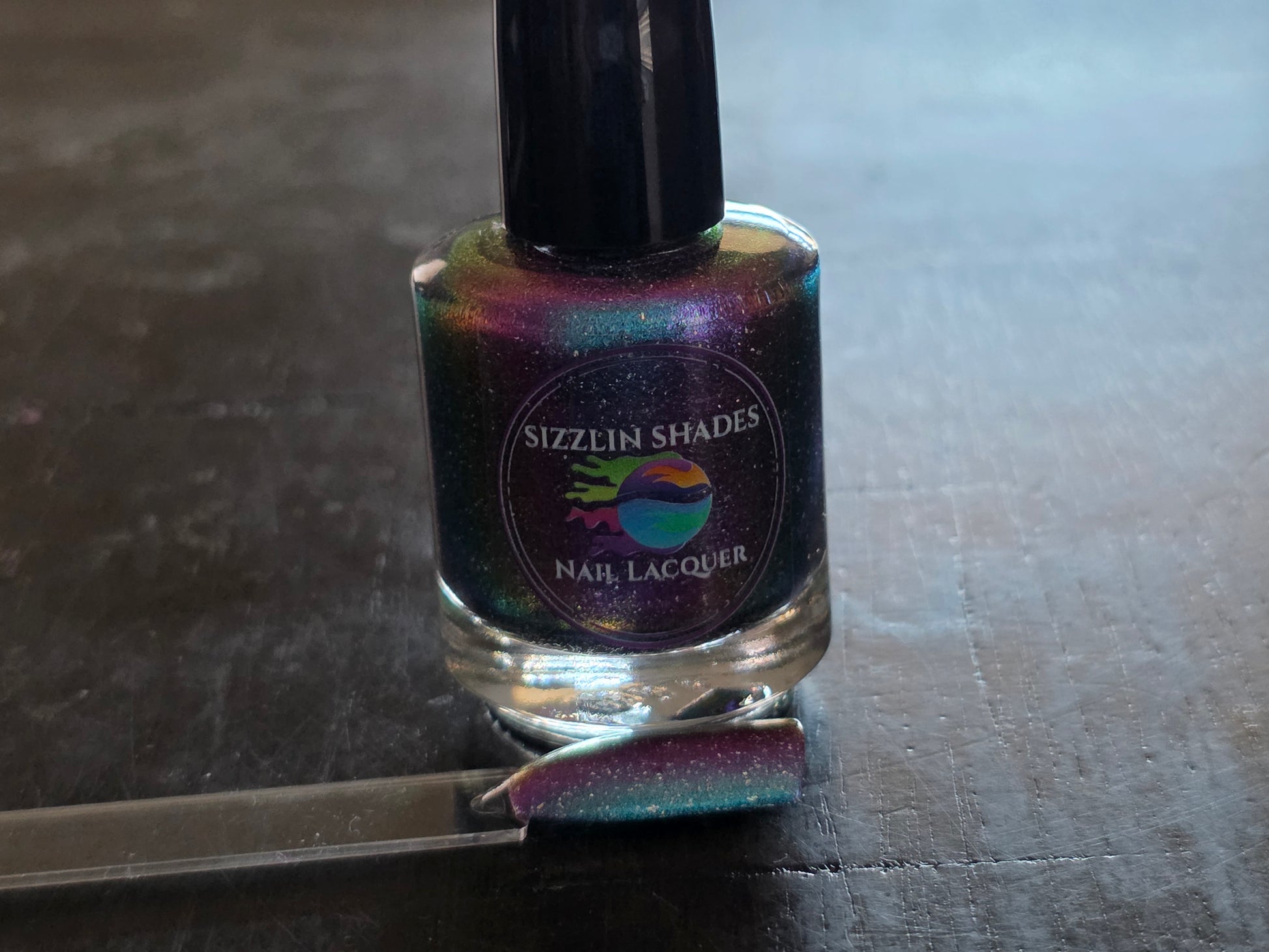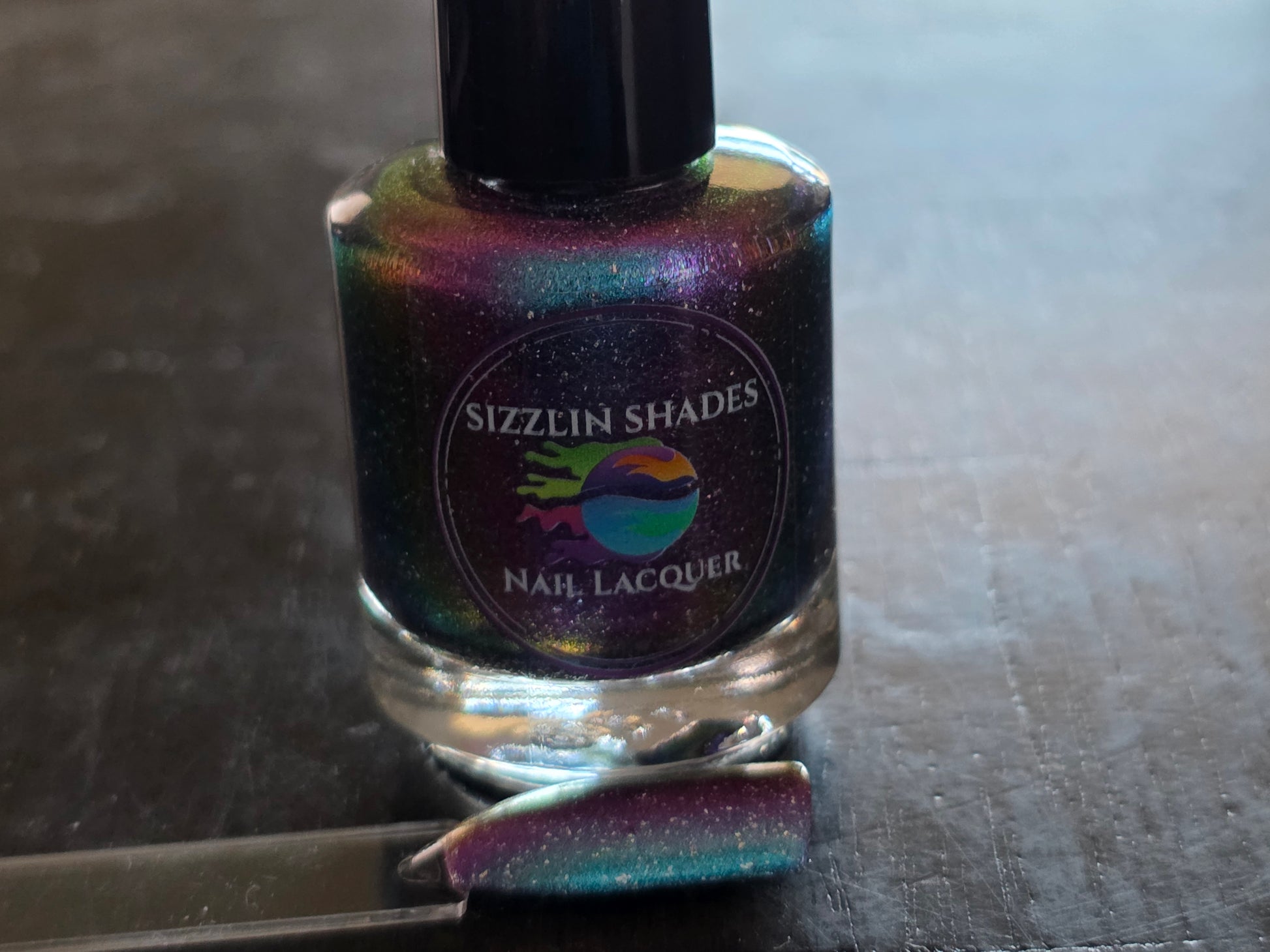 Beyond the Realm is a dark blue multichrome that shifts purple/pink/orange/green/teal, and has holo flakes throughout. The color shifts in this polish is amazing.