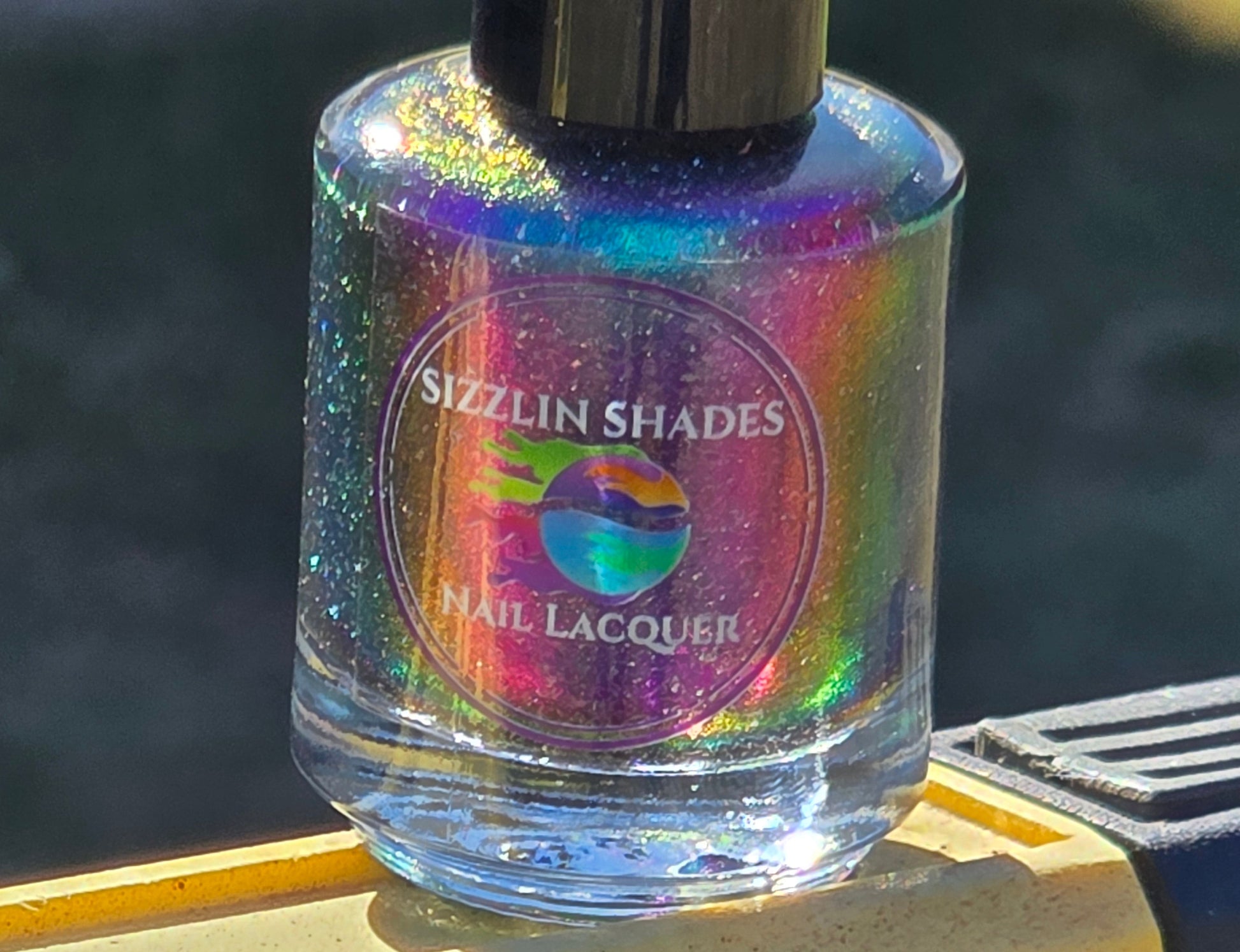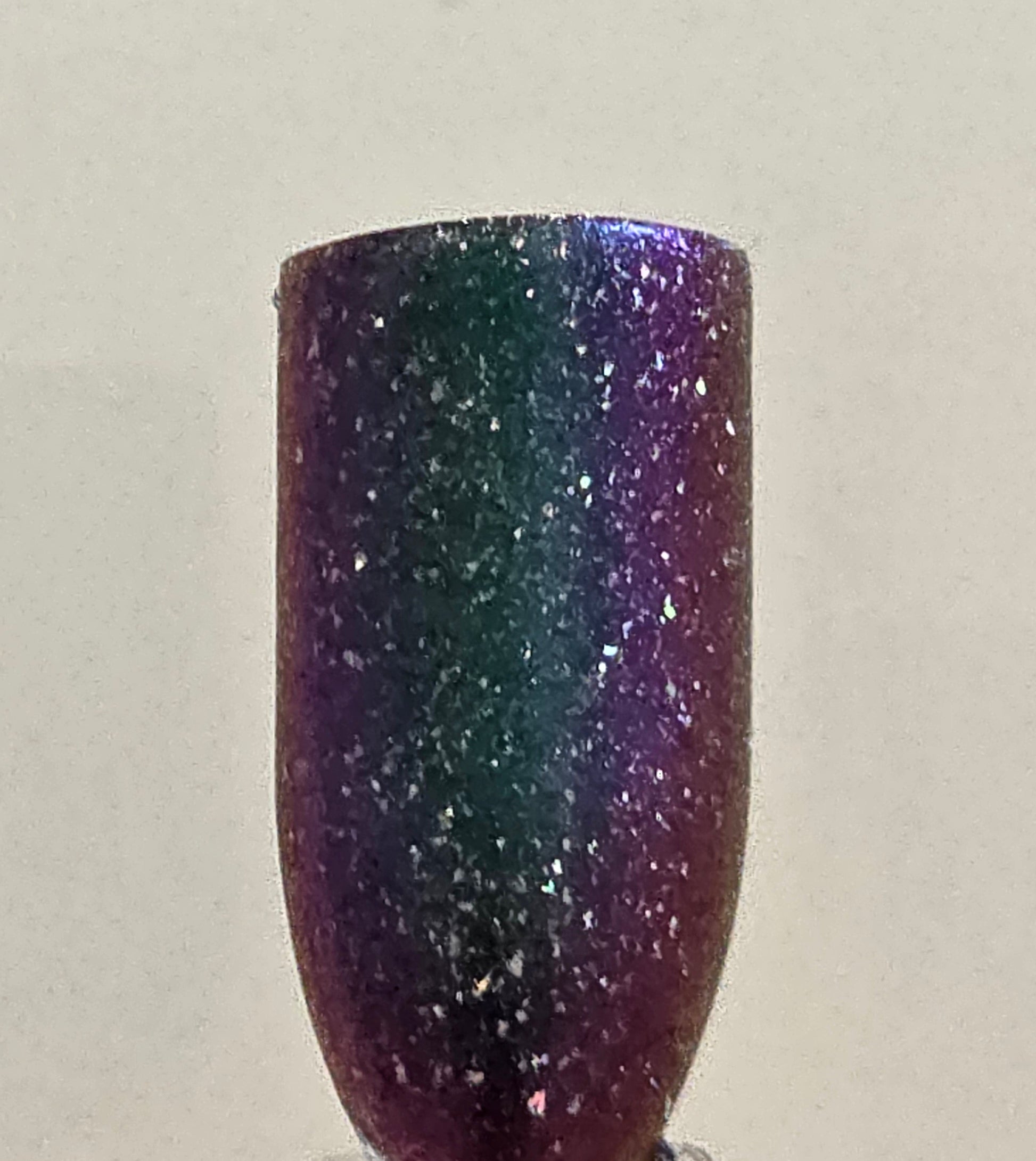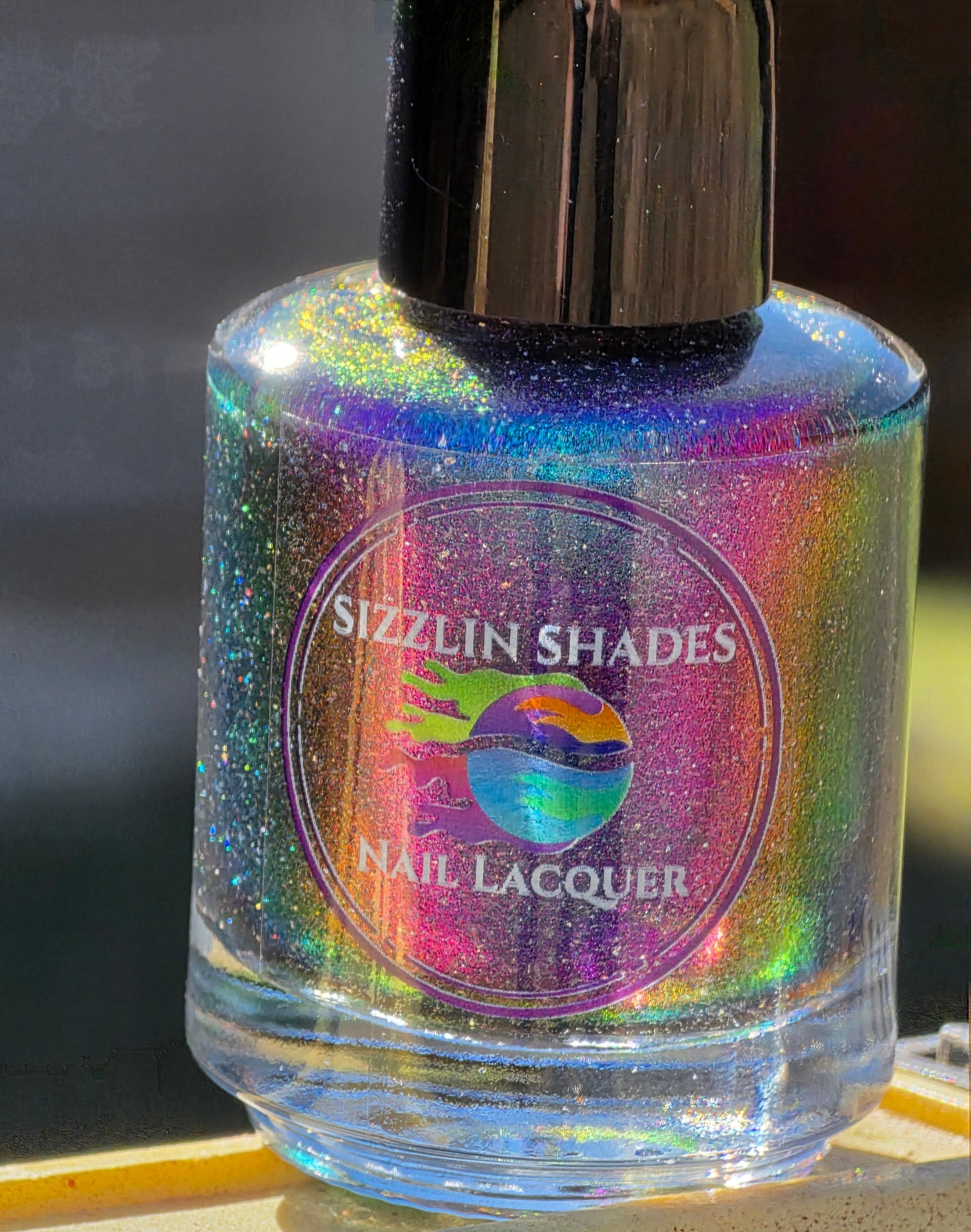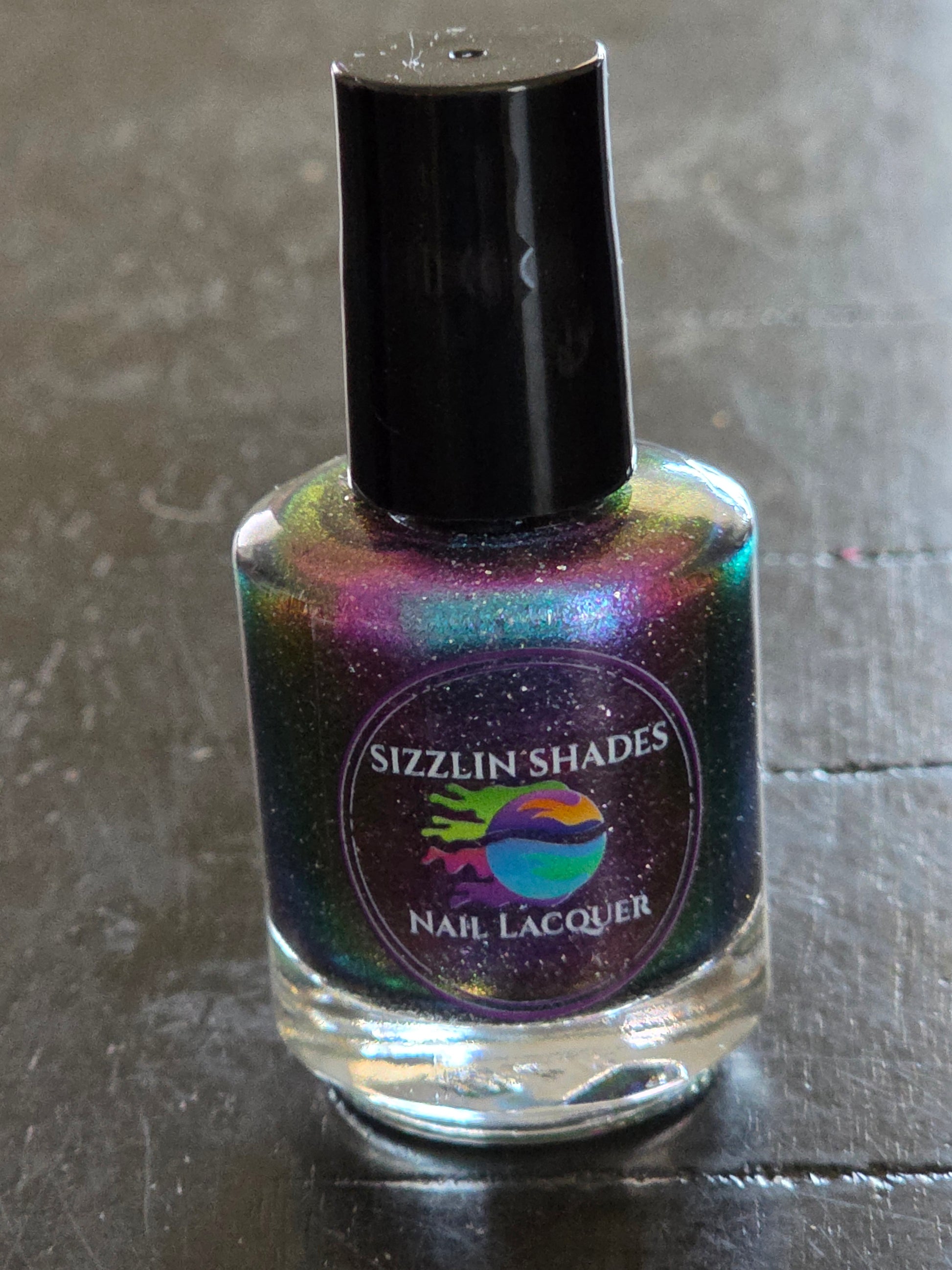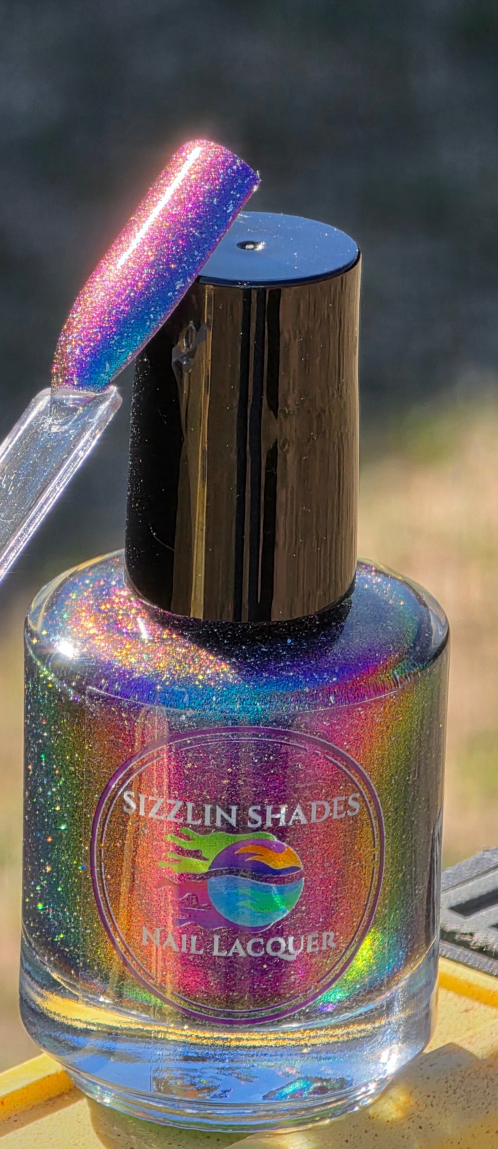 Beyond the Realm is a dark blue multichrome that shifts purple/pink/orange/green/teal, and has holo flakes throughout. The color shifts in this polish is amazing.