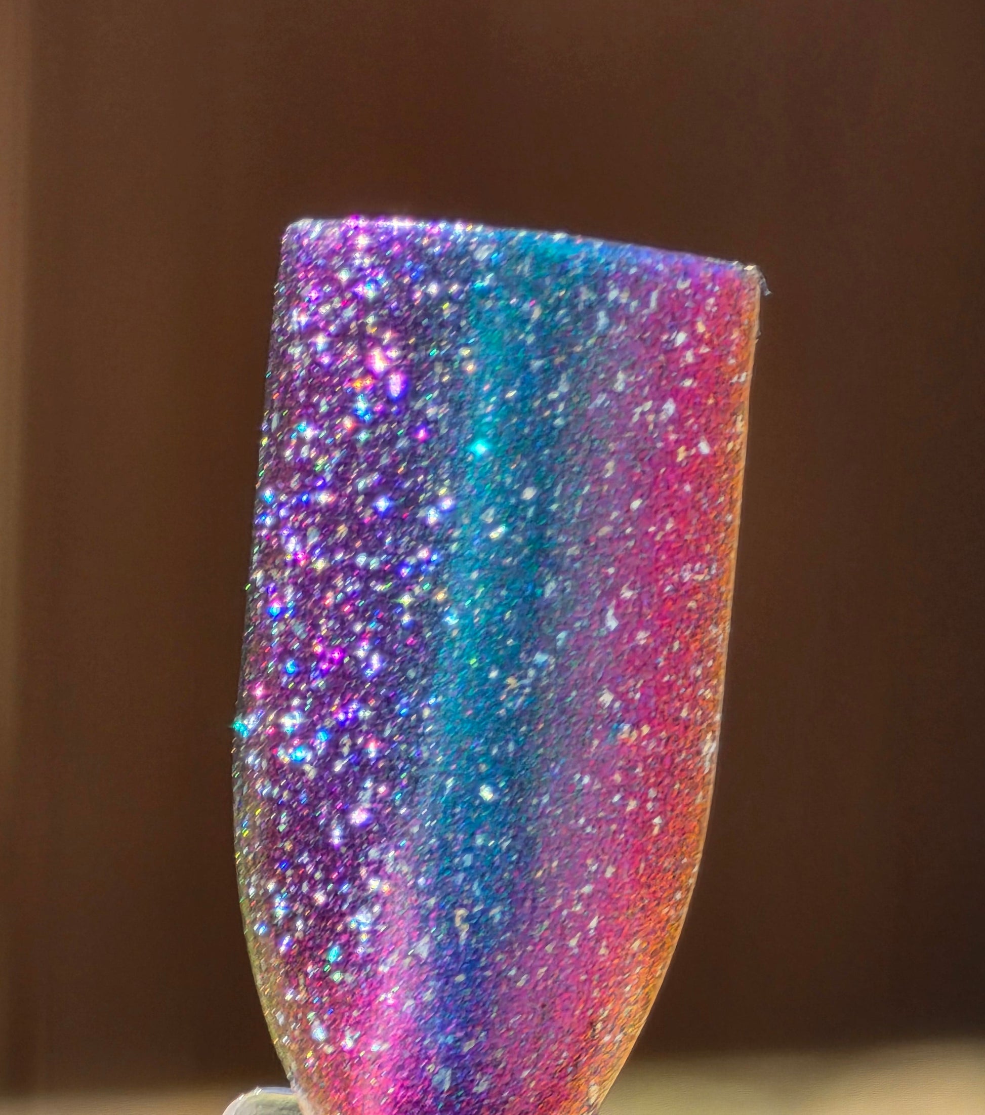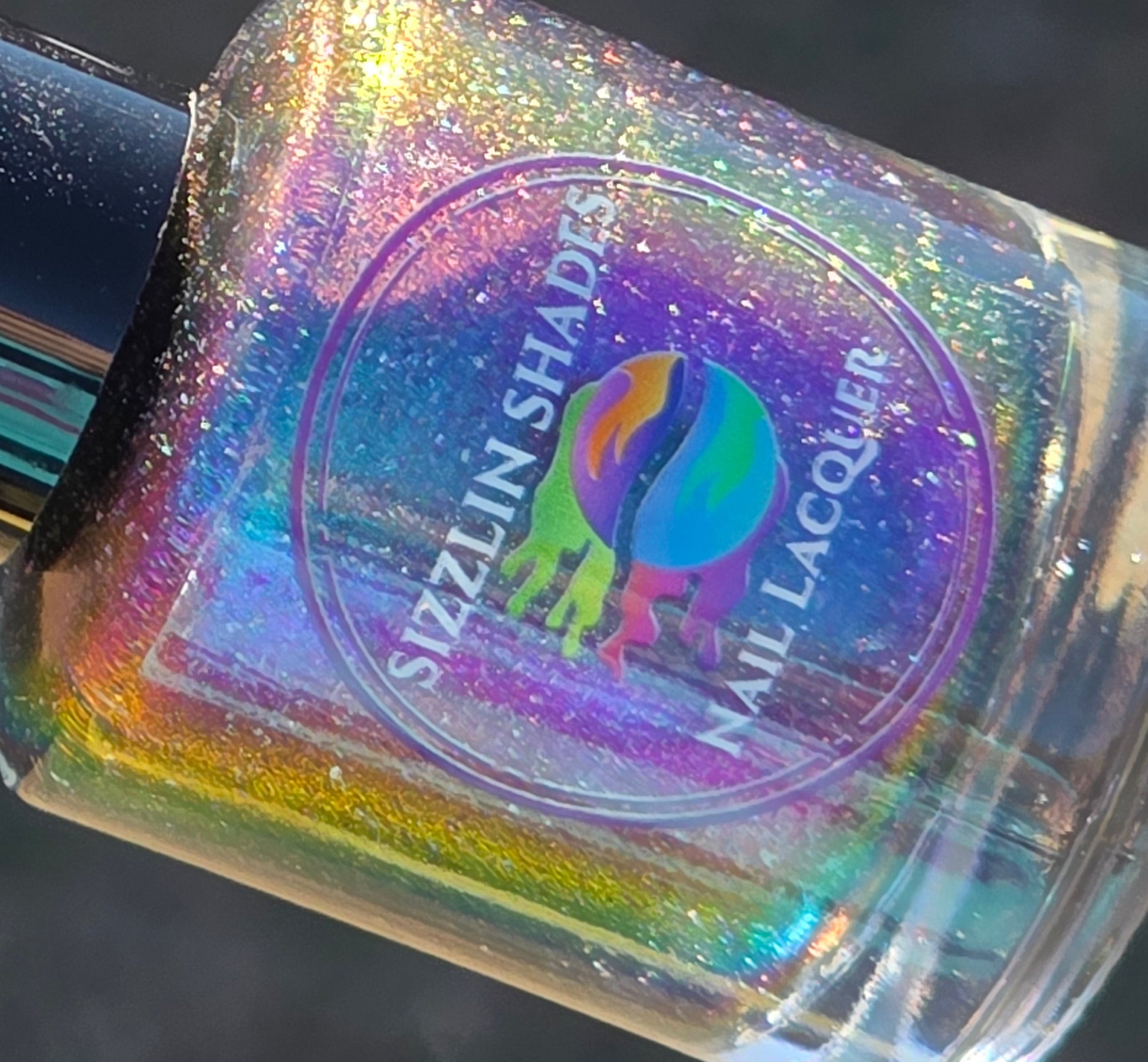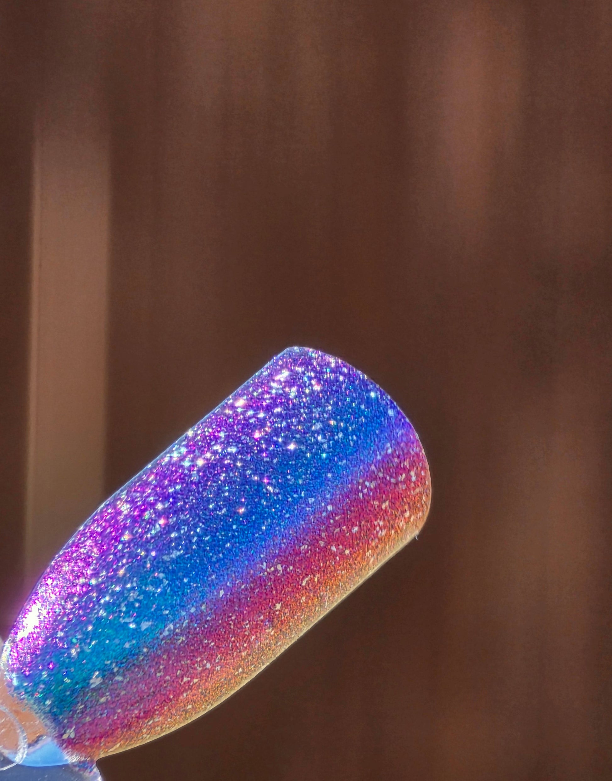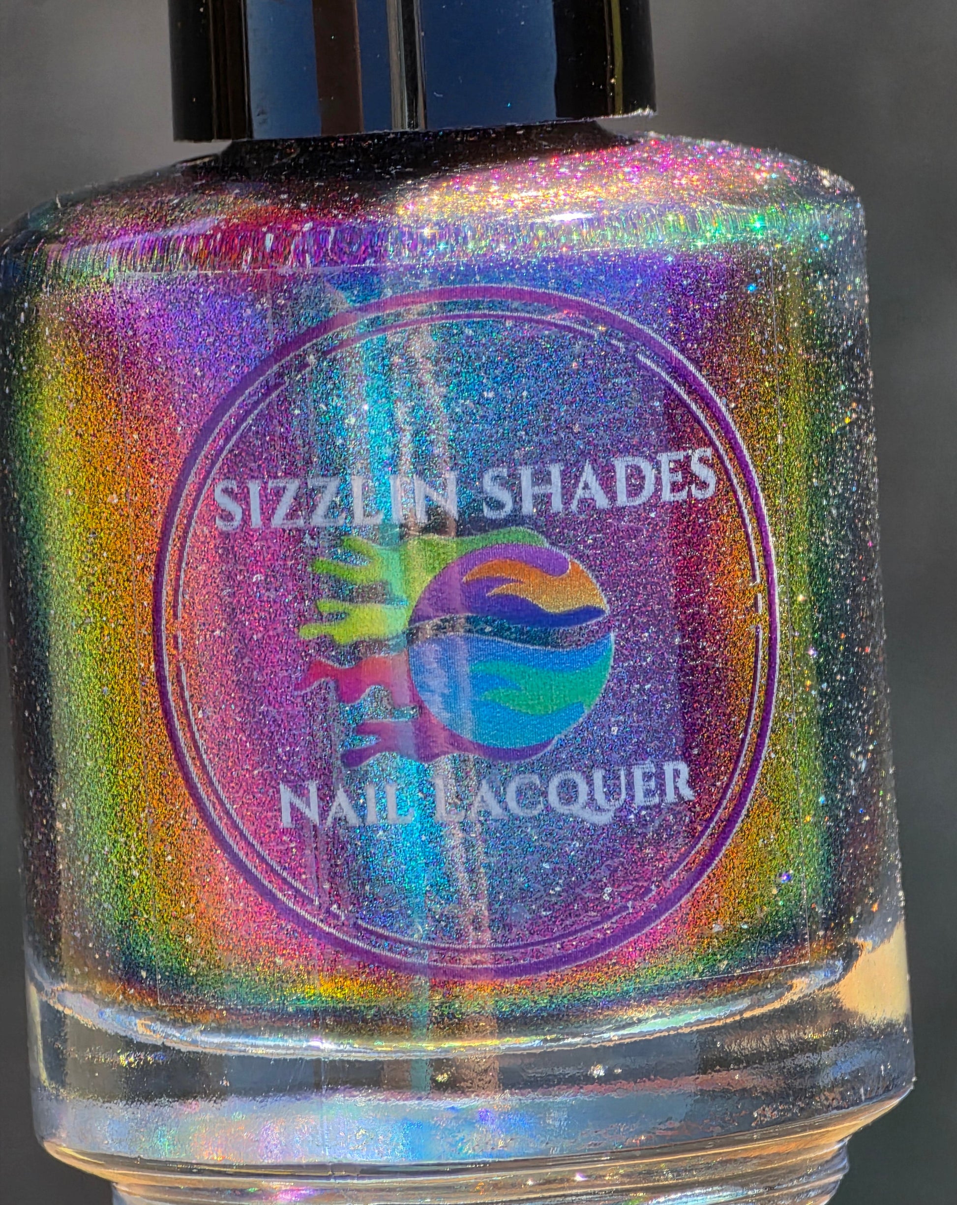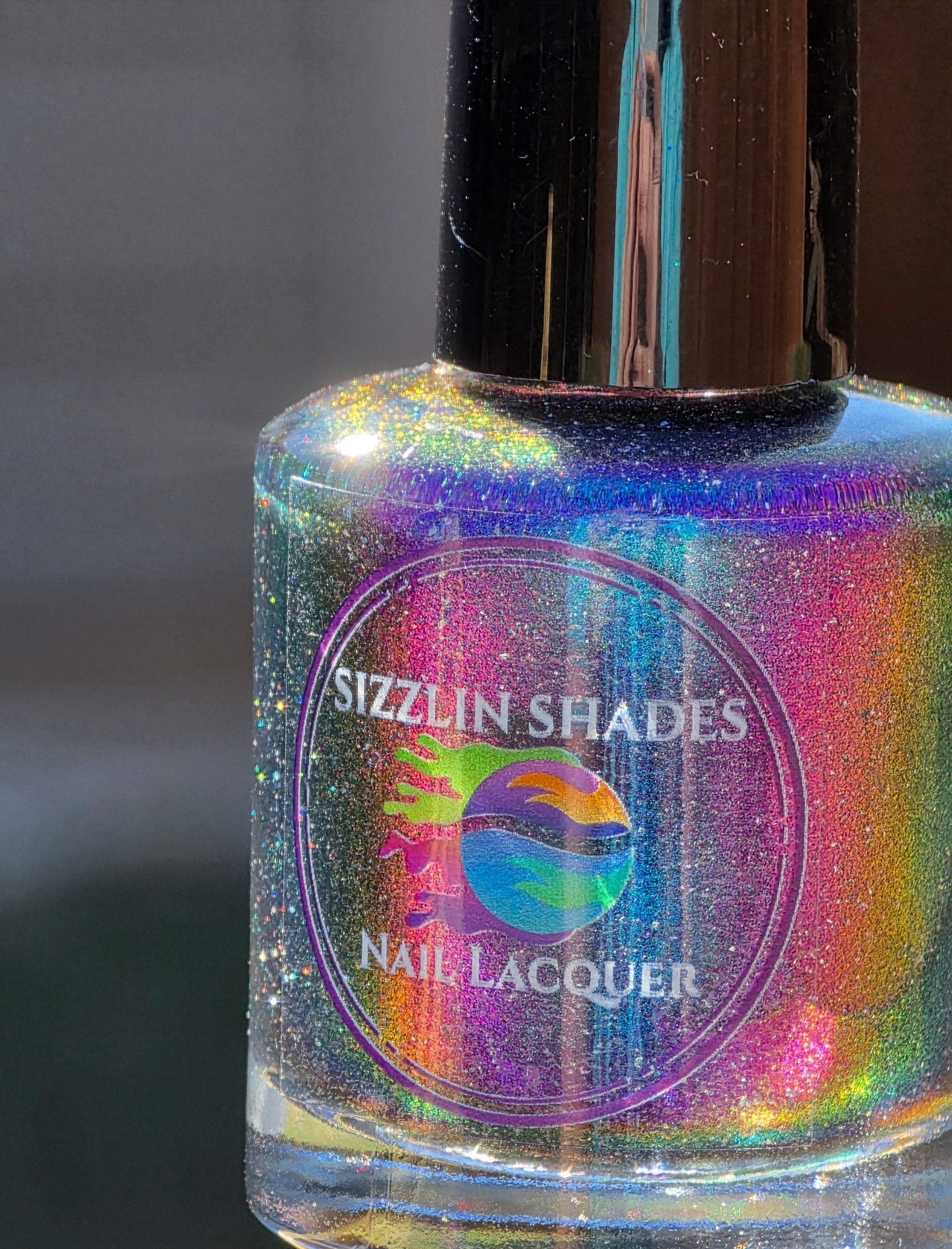 Beyond the Realm is a dark blue multichrome that shifts purple/pink/orange/green/teal, and has holo flakes throughout. The color shifts in this polish is amazing.