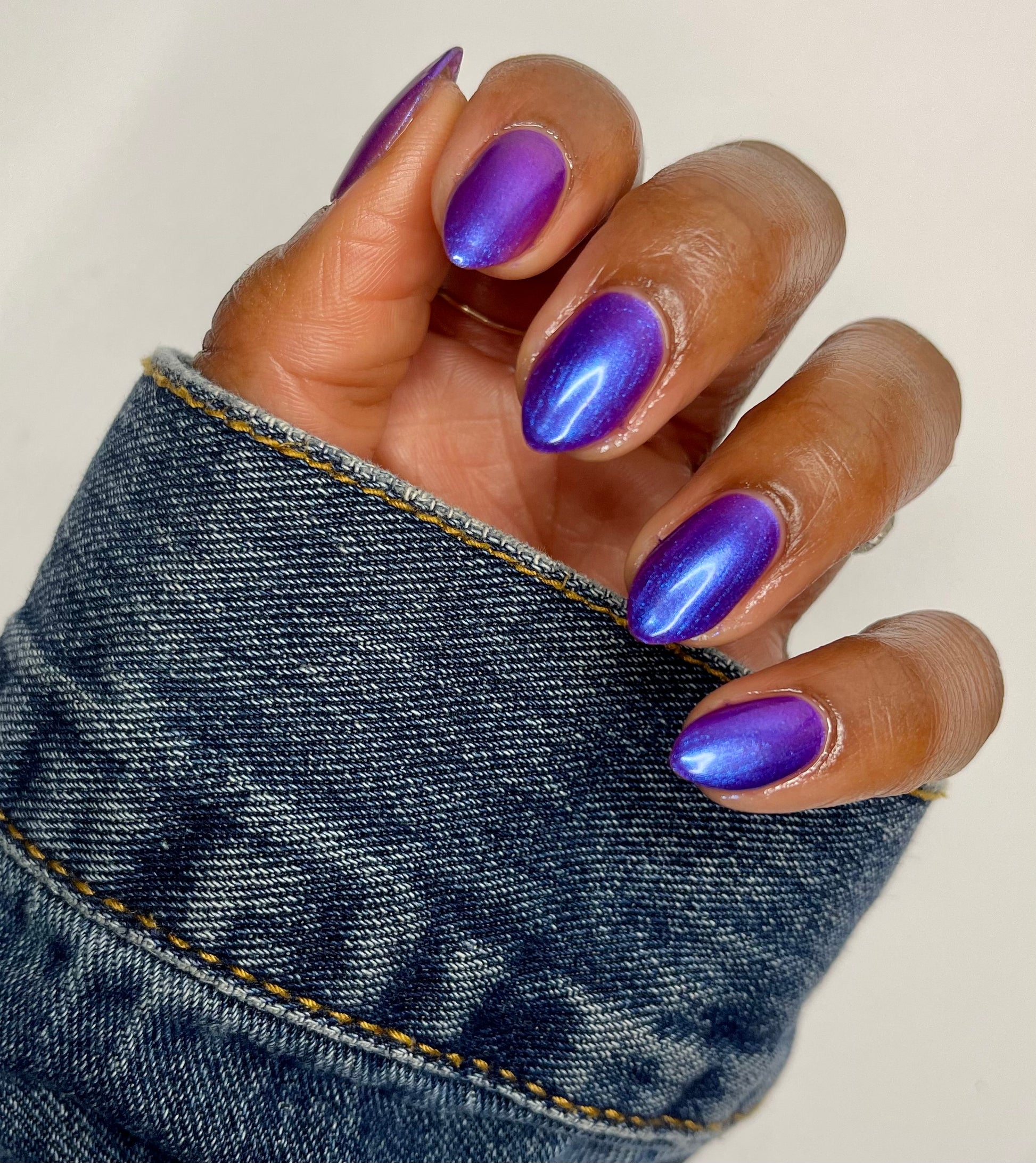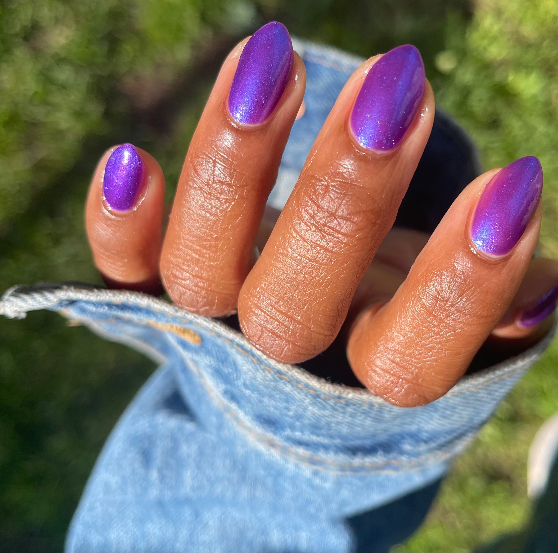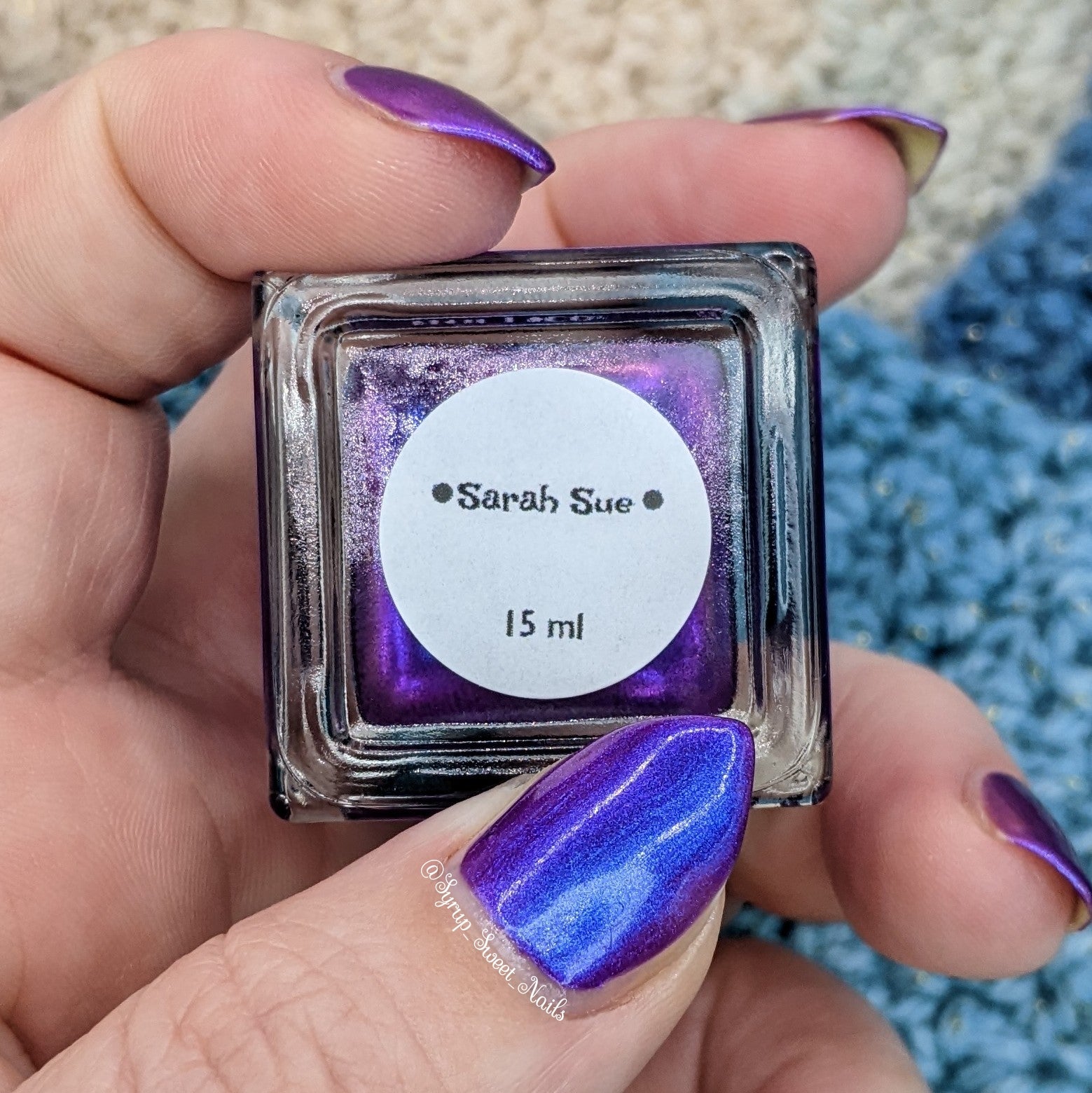 Sarah Sue is a purple base with blue/pink/purple shifting shimmer.