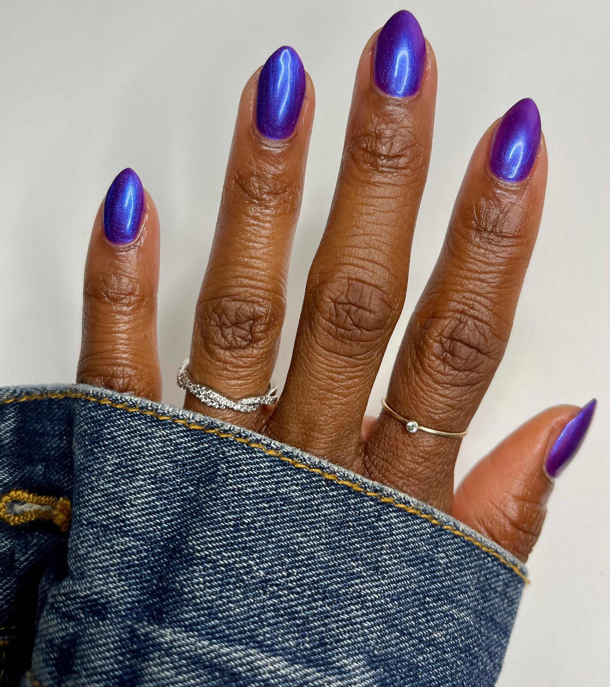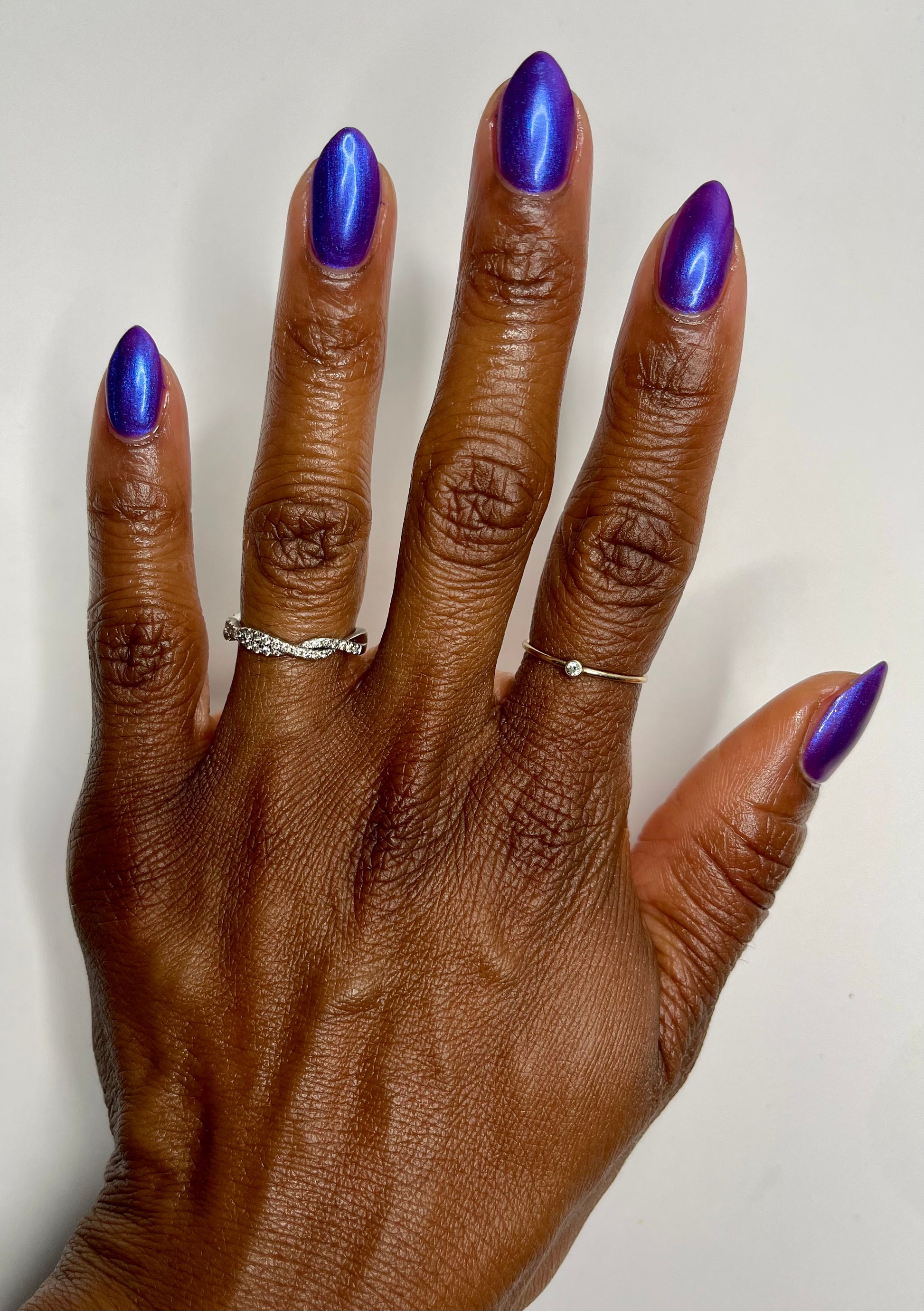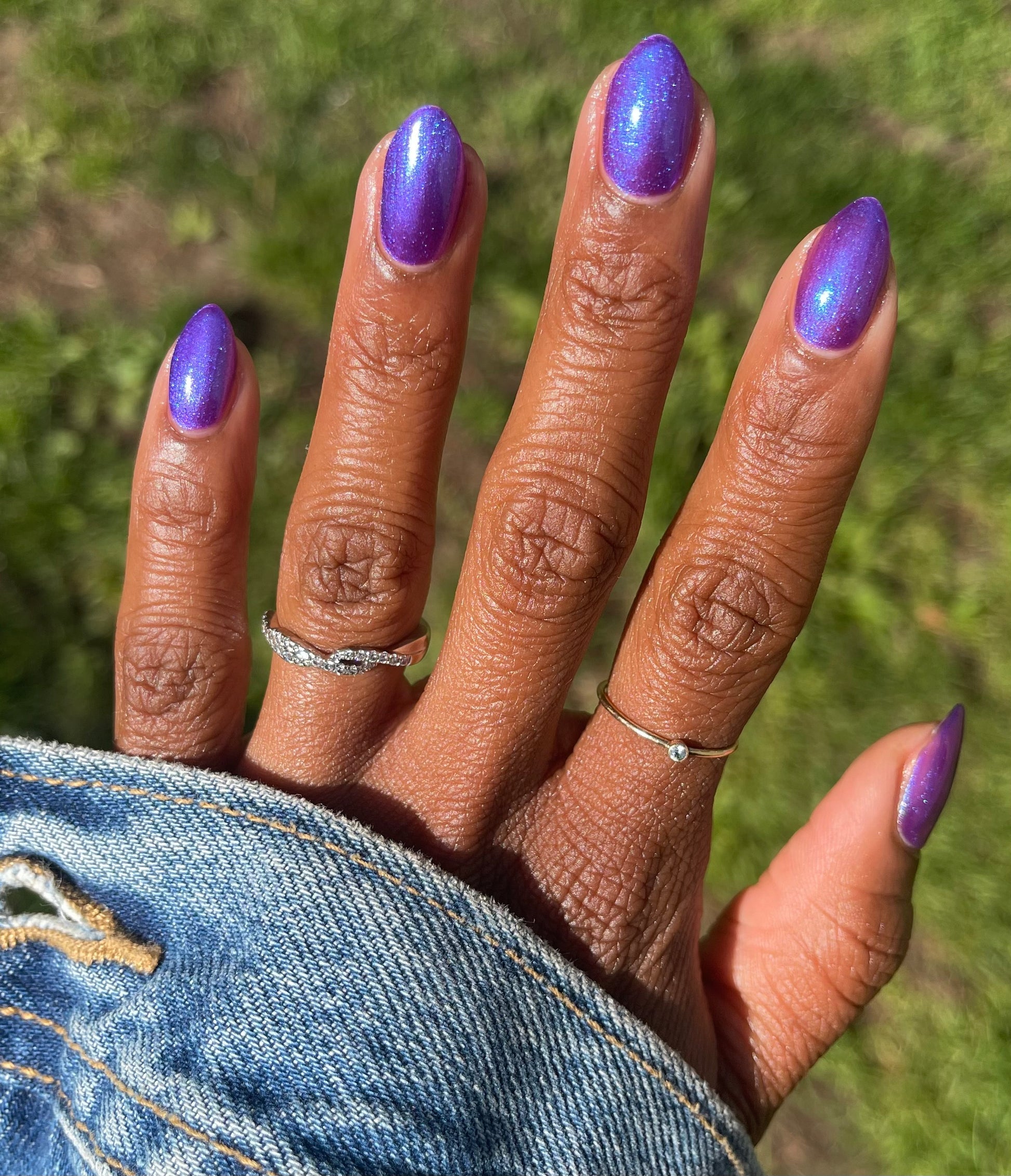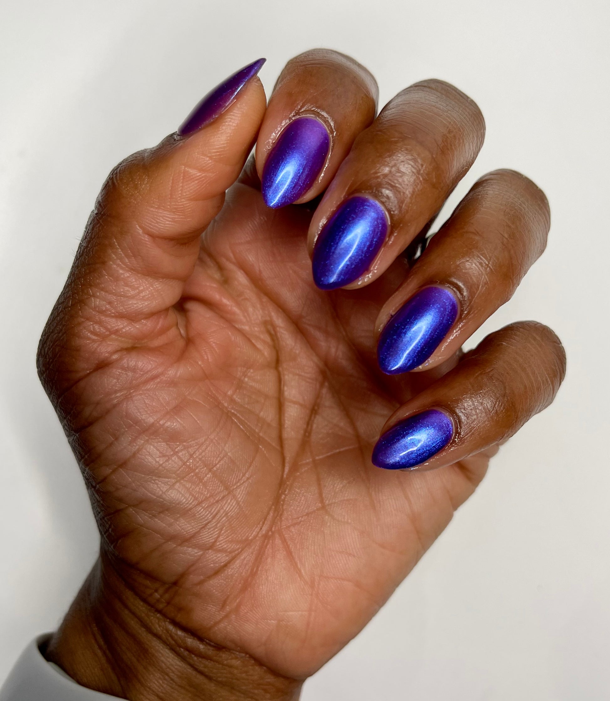 Sarah Sue is a purple base with blue/pink/purple shifting shimmer.